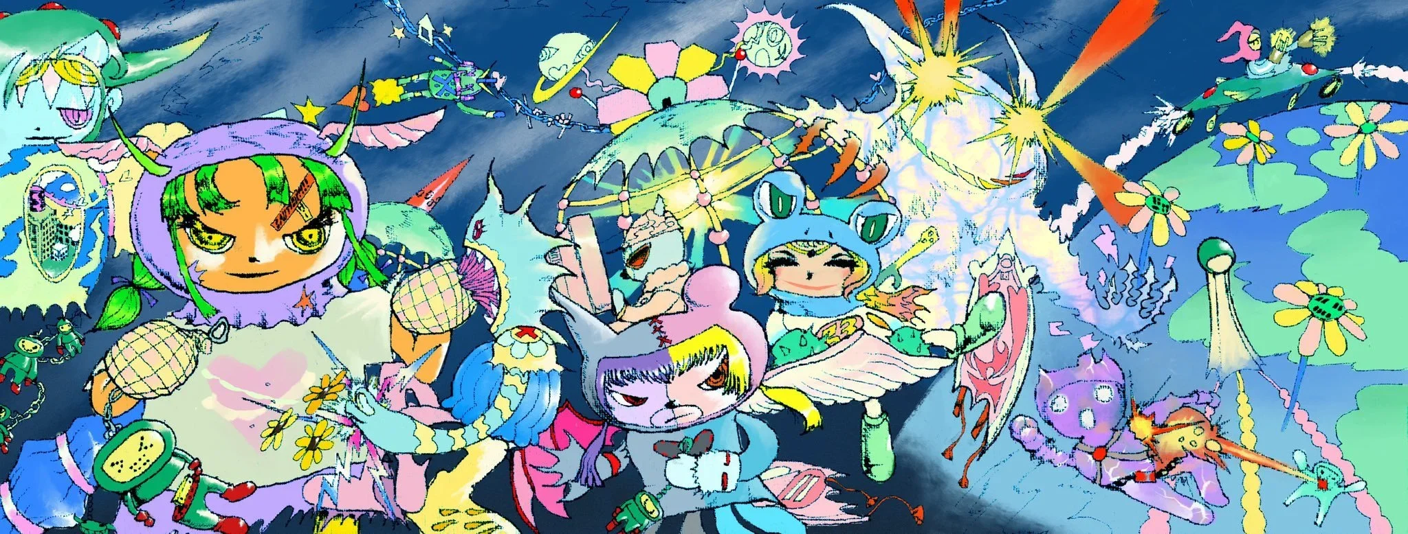 AdWorld draws inspiration from Digimon (classic Isekai), Summer Wars, Yu-Gi-Oh, Akira, Codename: Kids Next Door, the 3D Sonic games era, Resident Evil, Tekken, Bionicle, early 2000s Adult Swim, Gorillaz, and obscure MMOs like Dream of Mirror Online.
