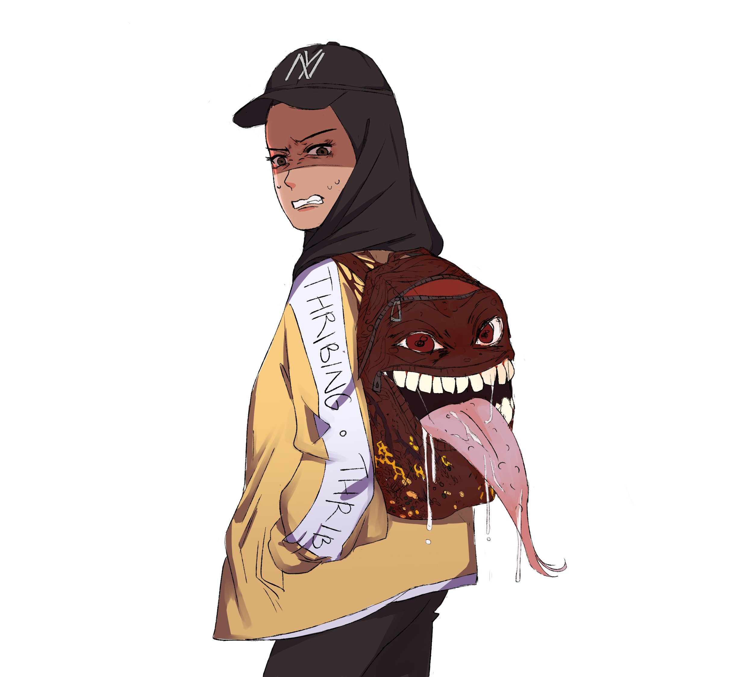 Caz tentatively approaches, and the backpack latches around her, warping into a demonic parasite, refusing to let go.