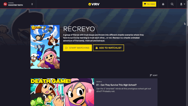 Recreyo!’s streaming pages on Rooster Teeth & VRV